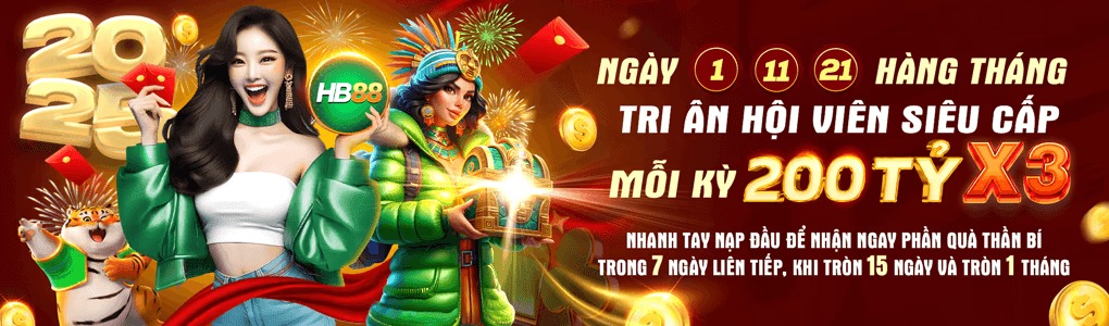 Ngày hội siêu cấp VIP: Diễn ra vào các ngày 1, 11 và 21 hằng tháng, chương trình tri ân này mang đến hàng loạt phần thưởng tiền mặt, vòng quay may mắn và lì xì siêu giá trị. Đặc biệt, hội viên VIP của HB88 sẽ được hưởng chính sách “Đặt cược – Đầu tư – Nhận lương”, cùng tiền định kỳ mỗi tuần, mỗi tháng với tổng giá trị lên đến hàng trăm tỷ/năm.